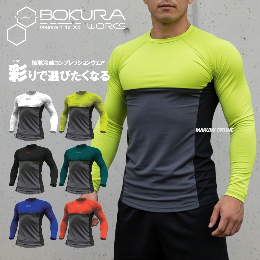 2026年春夏 ボクラワークス コトブキニット 長袖クルーネック キシリトールプリント インナー メンズ 接触冷感 吸汗速乾 ストレッチ 3614
