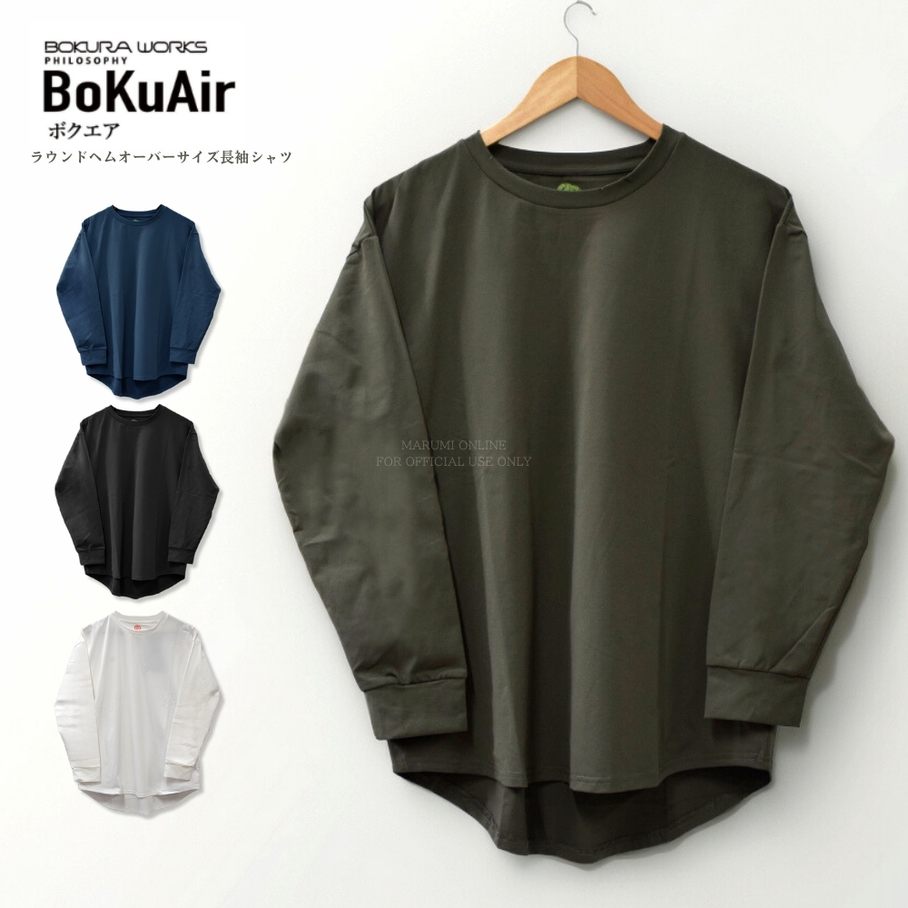 ボクラワークス コトブキニット ボクエア ラウンドヘムオーバーサイズ長袖Tシャツ 速乾 ストレッチ 軽量