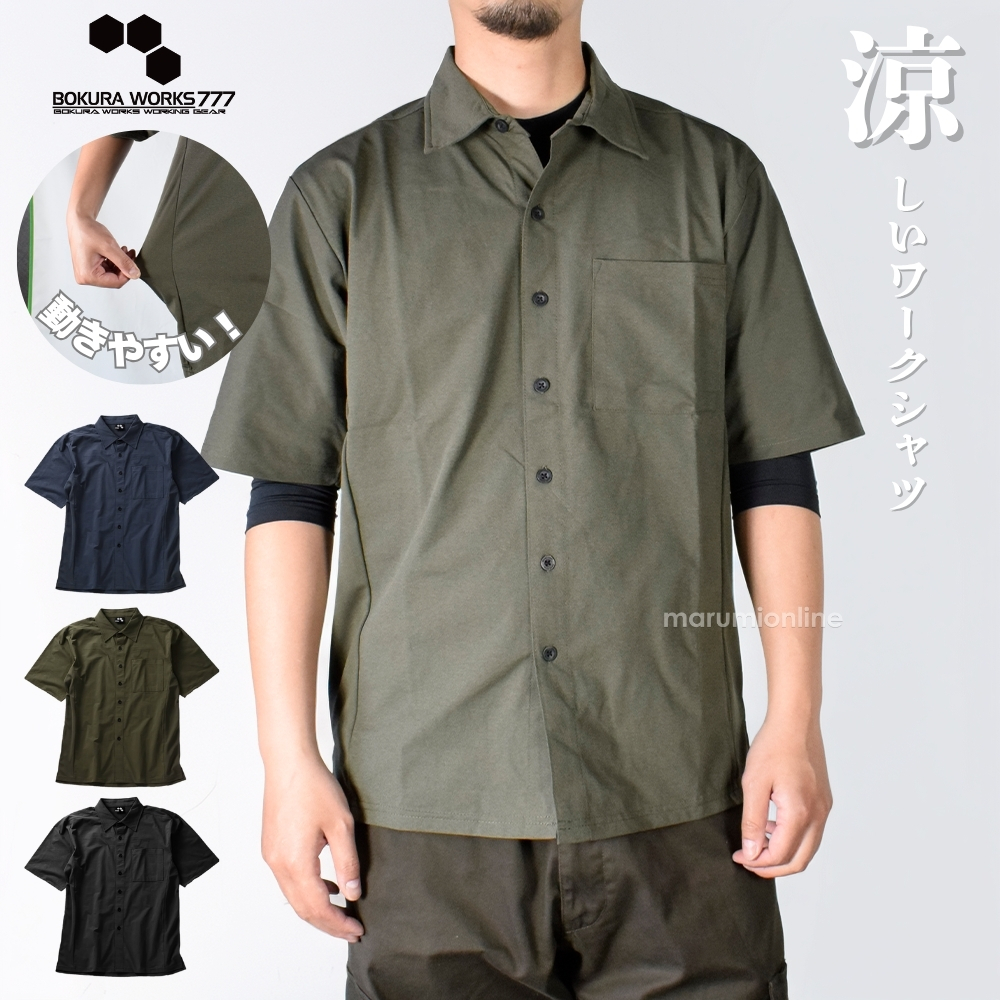ボクラワークス コトブキニット ワークシャツ メンズ 半袖シャツ 春夏 ニット UVカット 通気性 ストレッチ 3369