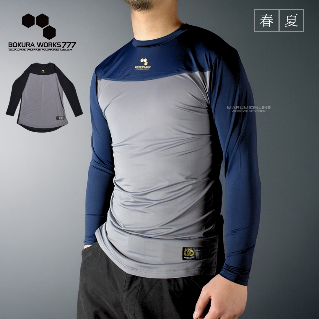 ボクラワークス コトブキニット 春夏 吸汗速乾 ストレッチ 接触冷感 通気性 UVカット キシリトール加工 インナー コンプレッション ストレッチ 長袖 3605