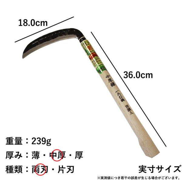 鎌 中厚 両刃 草刈り 根切り L字 180mm 1本 青鋼入 最優秀鋼材使用 園芸 ガーデニング