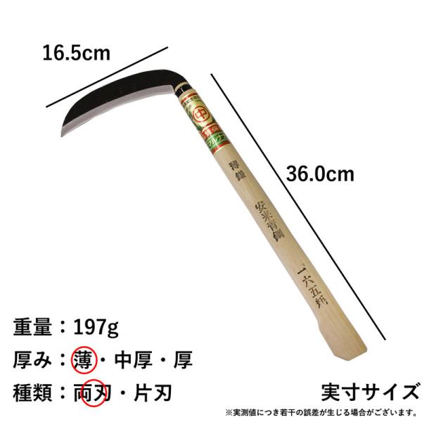 鎌 手打ち鎌 薄鎌 両刃 草刈り 根切り L字 165mm 1本 安来青鋼 最高級土佐刃物 園芸 ガーデニング
