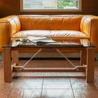 しっかりとした12mm厚の強化ガラス越しに見える、 ガルバナイズドの支柱を中心に構成されたアイコニックな構造。 カジュアルな雰囲気の中にも品格を感じさせる表情豊かなテーブルは、 さて、どんなソファやラグと合わせてインテリアに落とし込もうか、と想像を巡らせる楽しみがあります。 天板はクリアとアンバーの2色展開。色の違いで顔つきも変わります。
