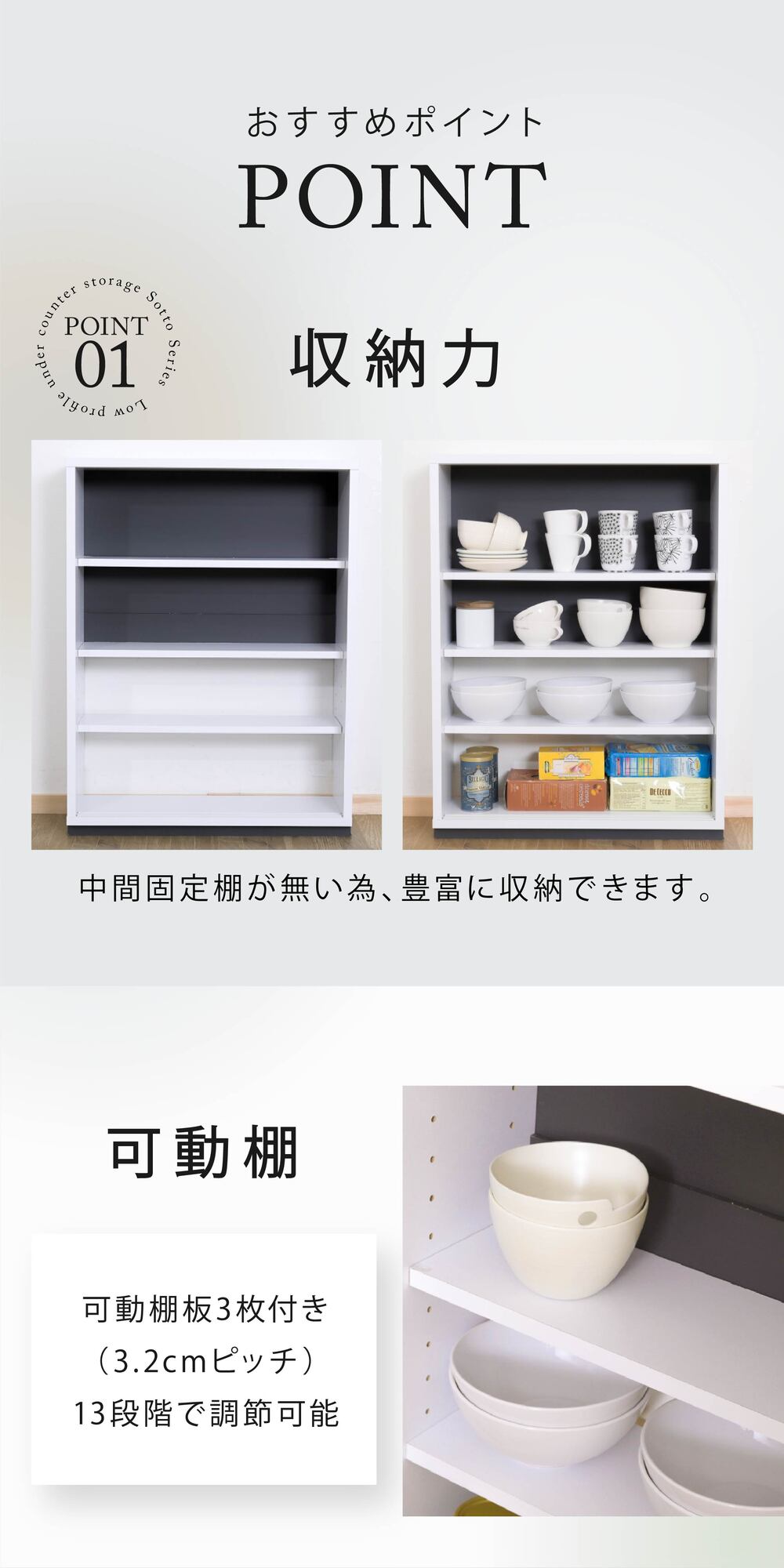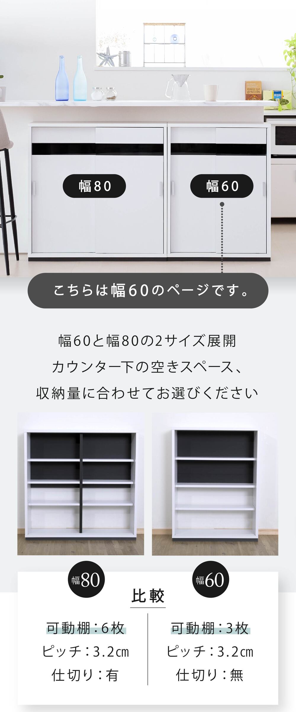 カウンター下 収納 ラック 薄型 食器棚 ロータイプ スリムラック キッチンボード カウンター 棚 キッチンラック 幅60