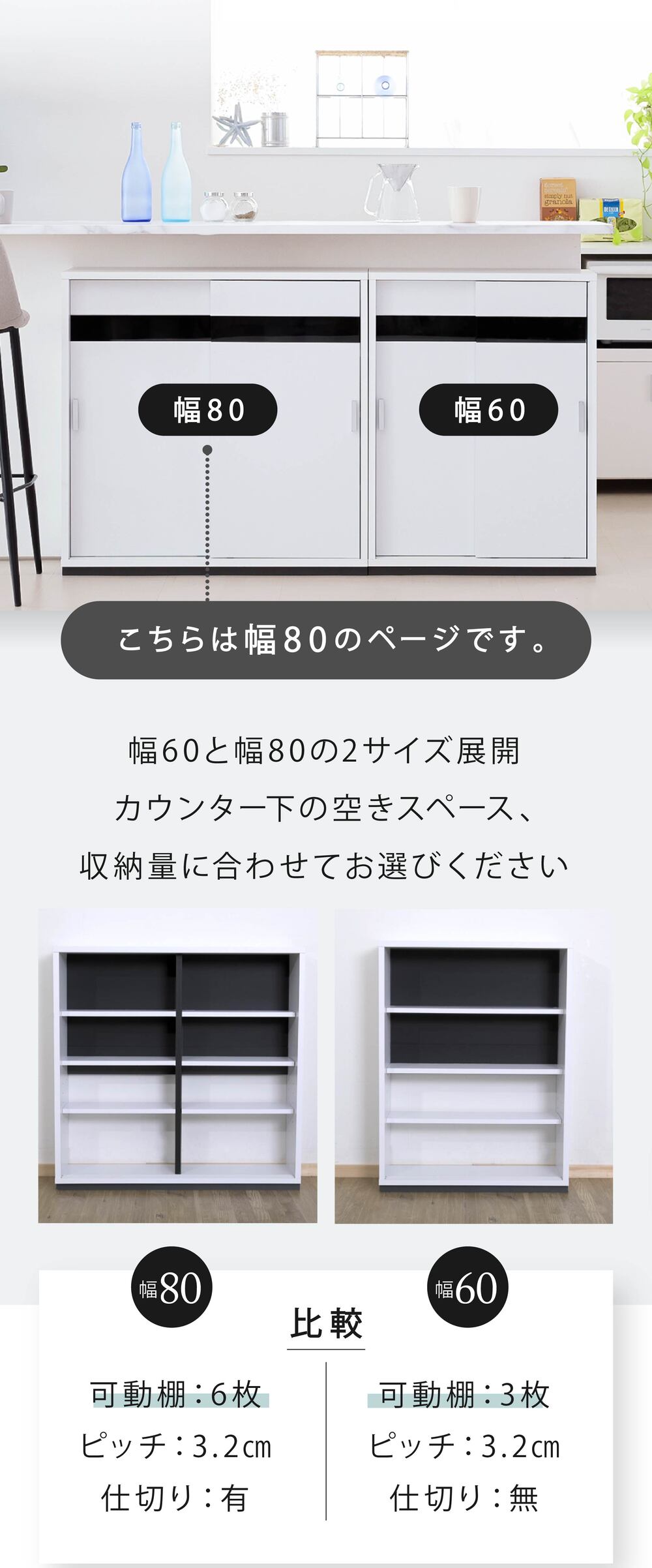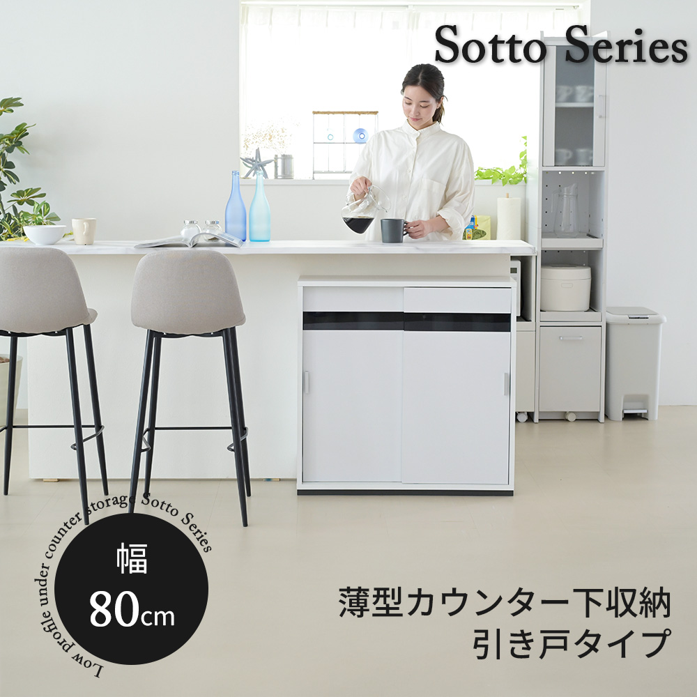 カウンター下 収納 ラック 薄型 食器棚 ロータイプ スリムラック キッチンボード カウンター 棚 キッチンラック 引き戸 幅80