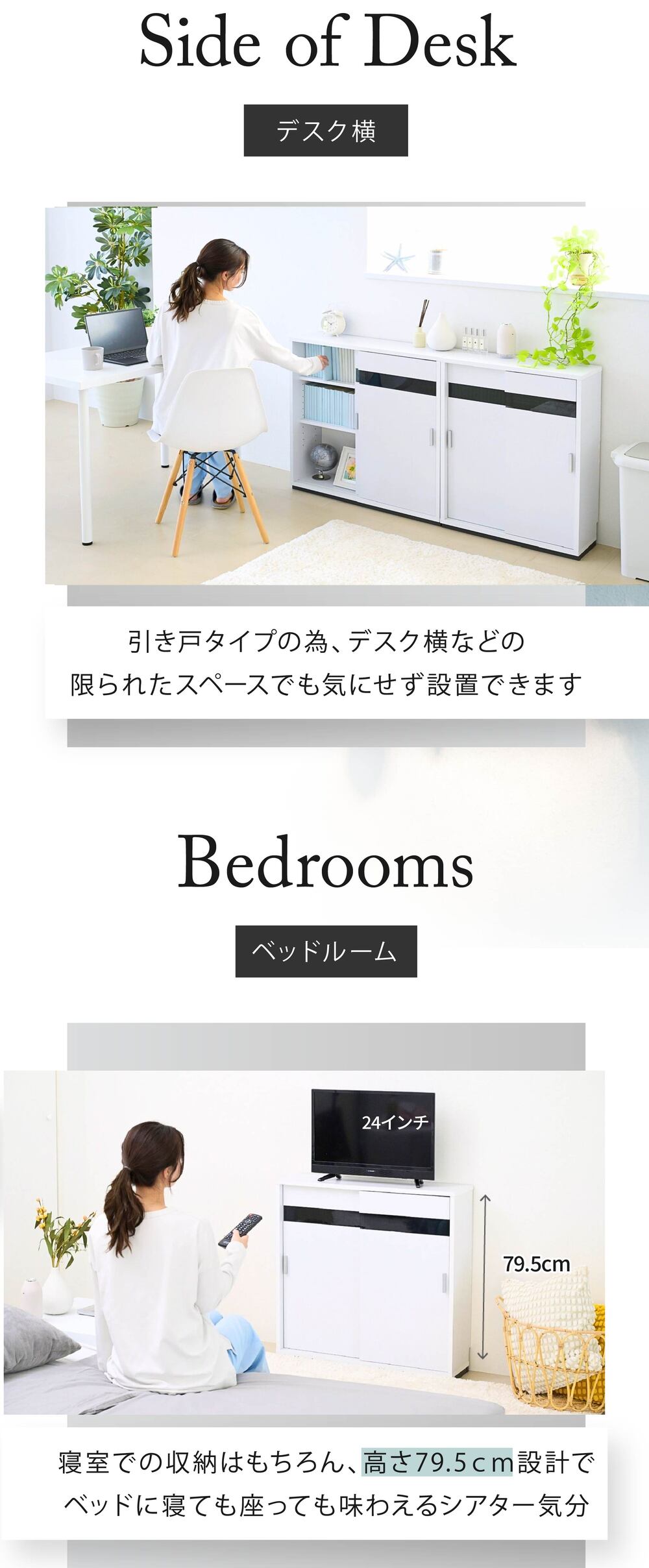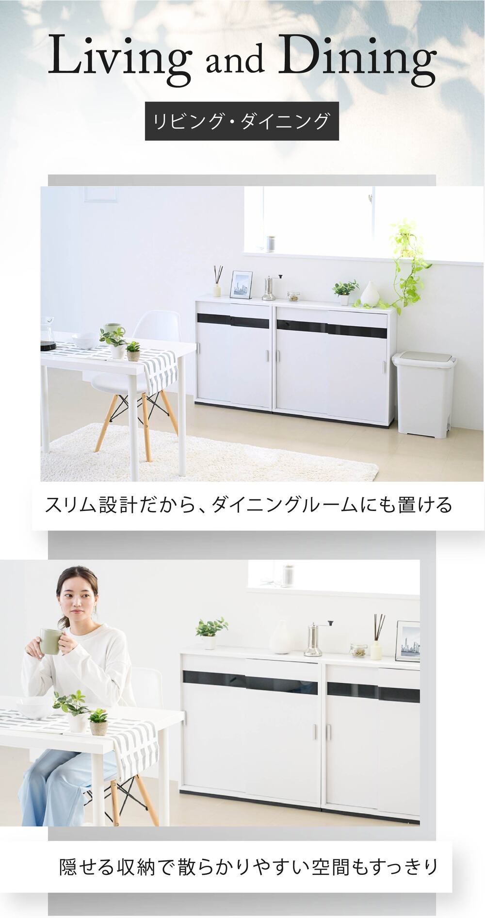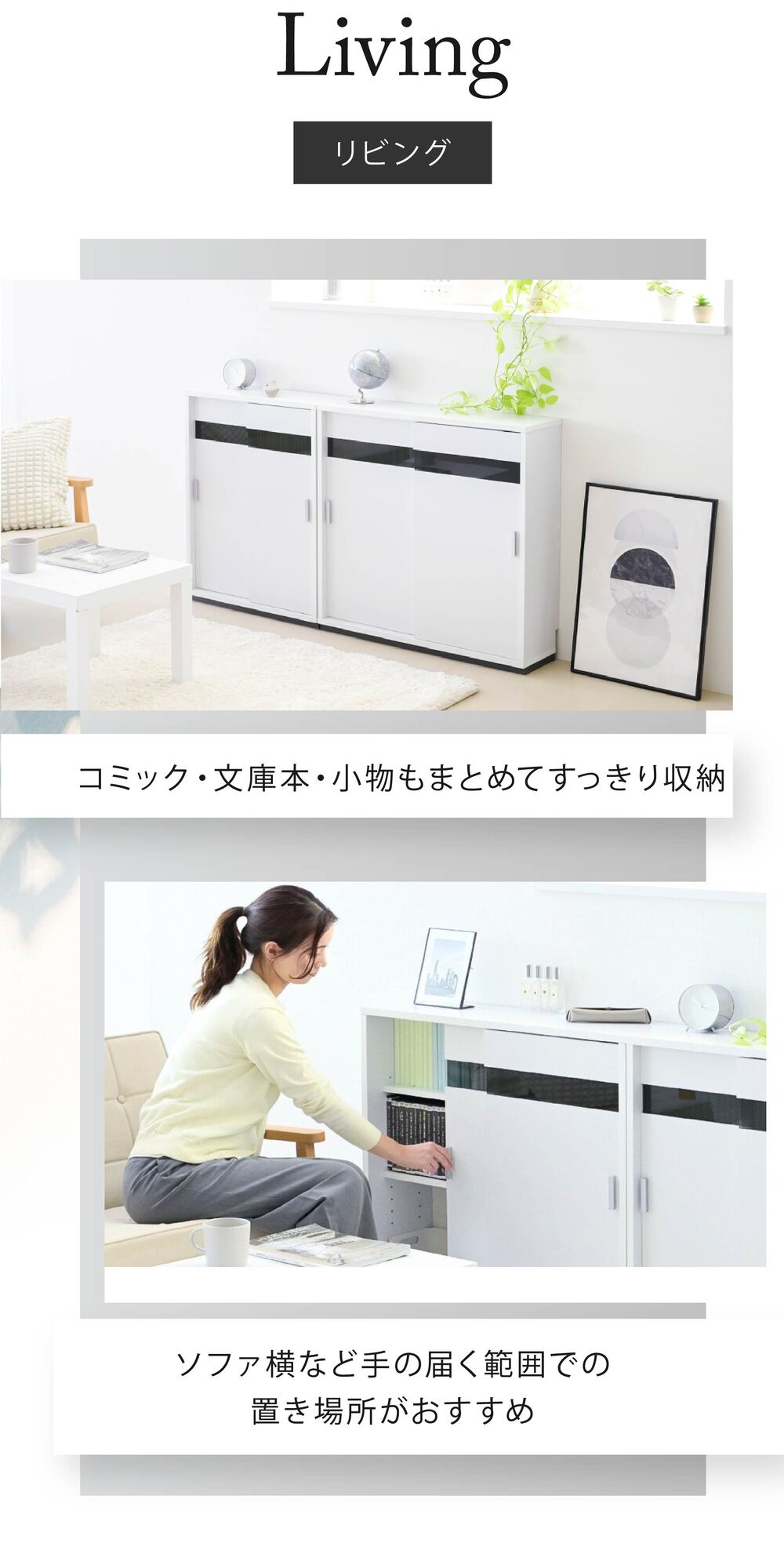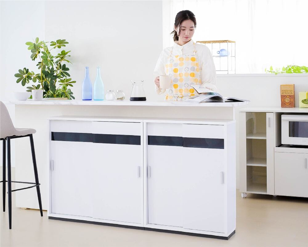 高さは80cmなので、カウンター下収納としてだけでなく、リビング収納としてもぴったり!