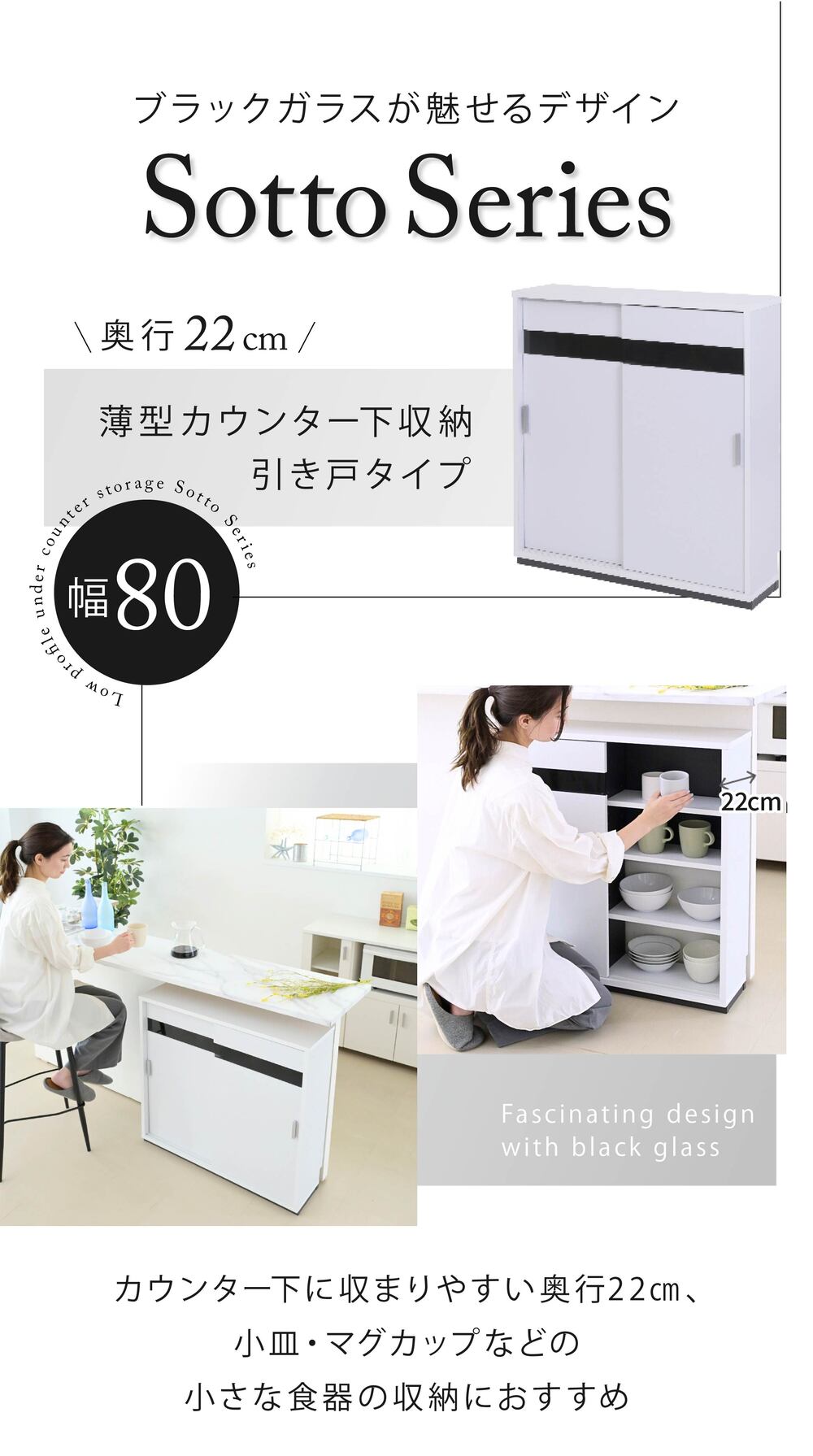 奥行き22cmのスリムタイプなカウンター下収納引き戸タイプ幅80。