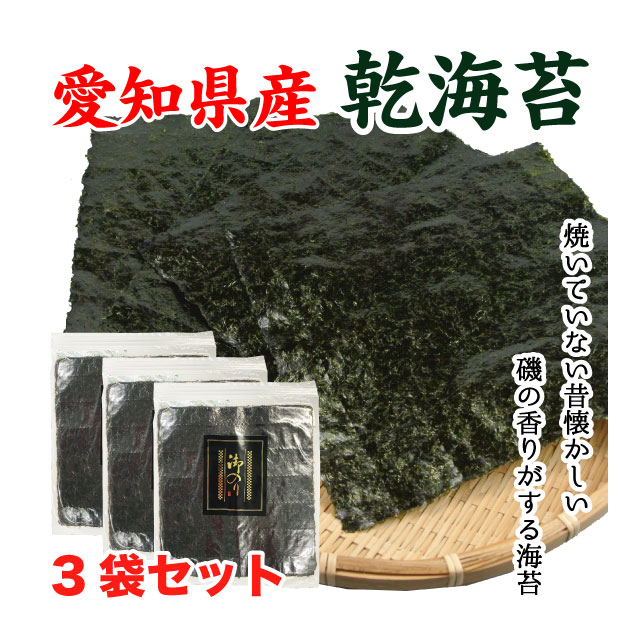 黒海苔 板海苔 乾海苔 愛知県産 昔ながらの海苔 焼いていない海苔 全型24枚 (8枚×3袋) 送料無料