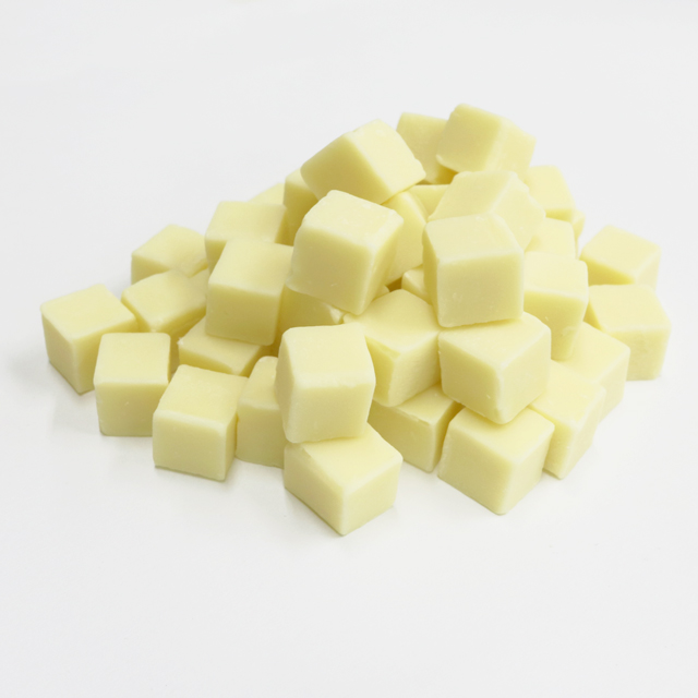 全粉乳、脱脂粉乳未使用のホワイトチョコレート。