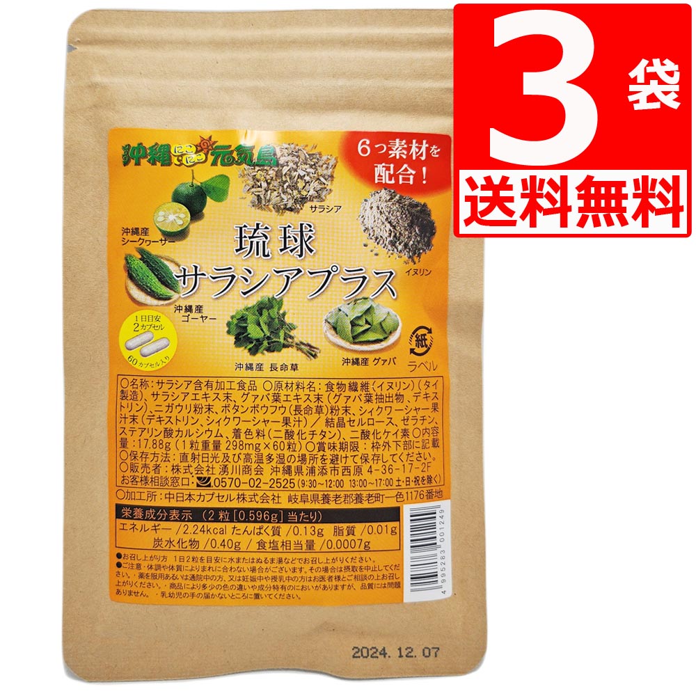 名称 | 琉球サラシアプラス 60粒×3袋(約3か月分)(送料無料) サラシア/イヌリン/シークヮーサー/ゴーヤー/長命草/グヮバ配合 |
