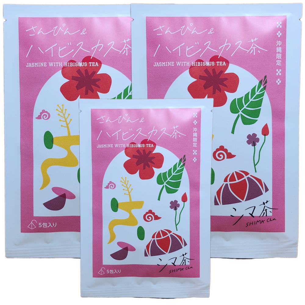 さんぴん ハイビスカス茶 シマ茶ティーバッグ 5包入り 3袋 沖縄限定 沖縄のハイビスカスティー