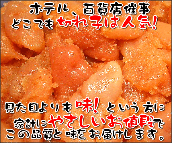 そもそも切れ子とは、贈答用商品の辛子明太子を作る過程で、端っこが