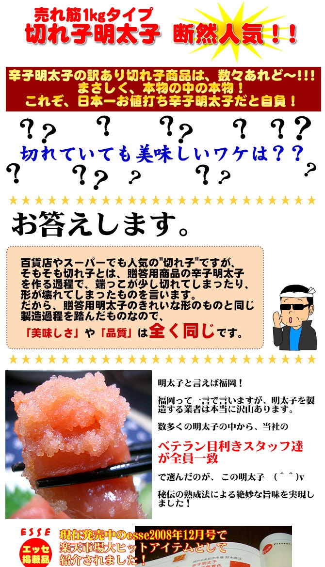 贈答用明太子のきれいな形のものと同じ製造過程を踏んだものなので、