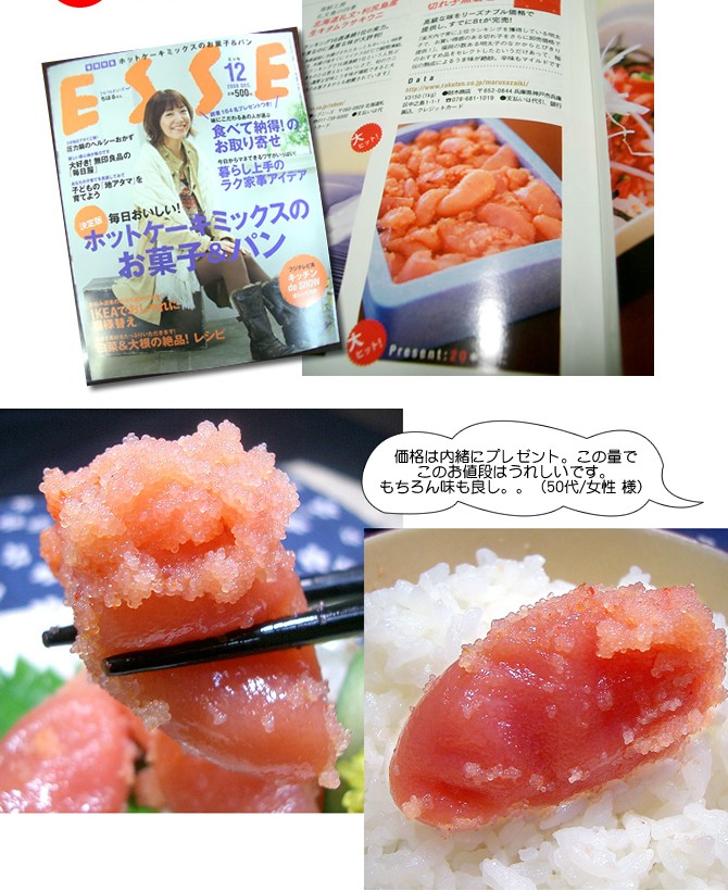 売れるのが常ですが、当社の明太子は、お陰さまで広告もせず見つけてくれた方々の
