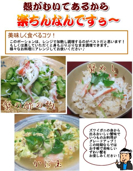 【原材料名】ズワイカニ、酸化防止剤(亜硫酸塩)