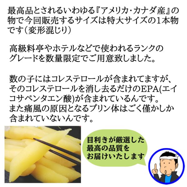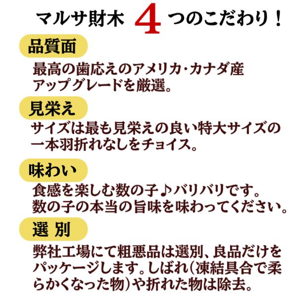 | ポイント | ●厳選した素材で歯ごたえ、味に自信があります ●中央市場の目利きのプロが原料を厳選してご用意致しました ●たっぷり楽しめる1kgのボリュームです。 ●食べても美味しい特大サイズ。 おせち料理に、手巻き寿司に、サラダに、おひたしに、煮物・焼き物の添え物に、酢の物等、アイデア次第で幅広くお使い頂けます。 |