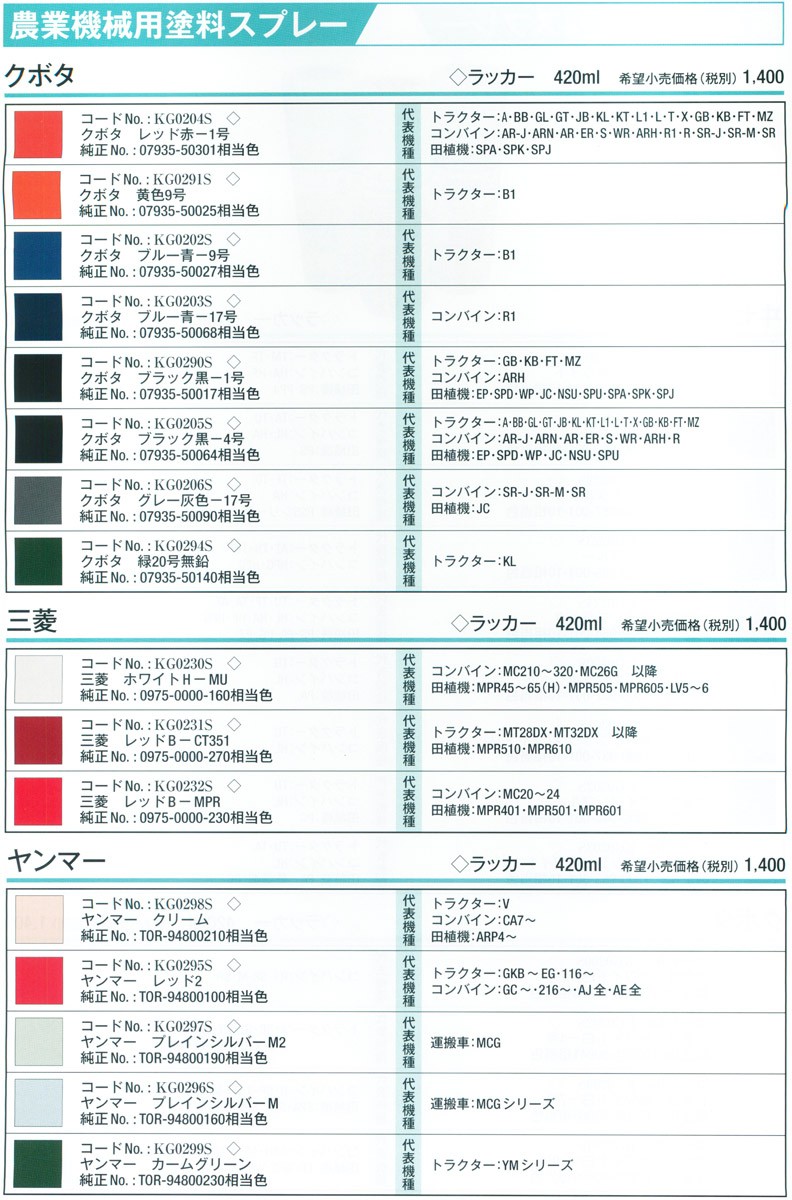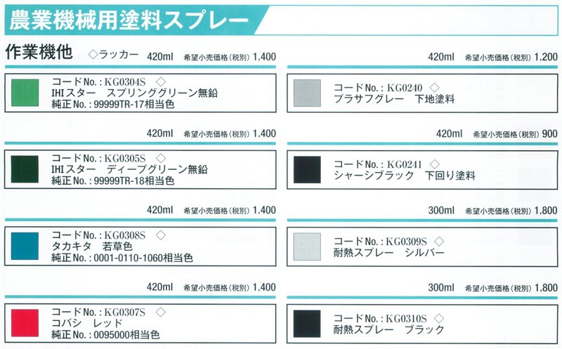 KBL 農業機械用塗料スプレー クボタ ブラック黒-1号 (1本(420ml)) (品番 KG0290S) (農機用 補修塗料)
