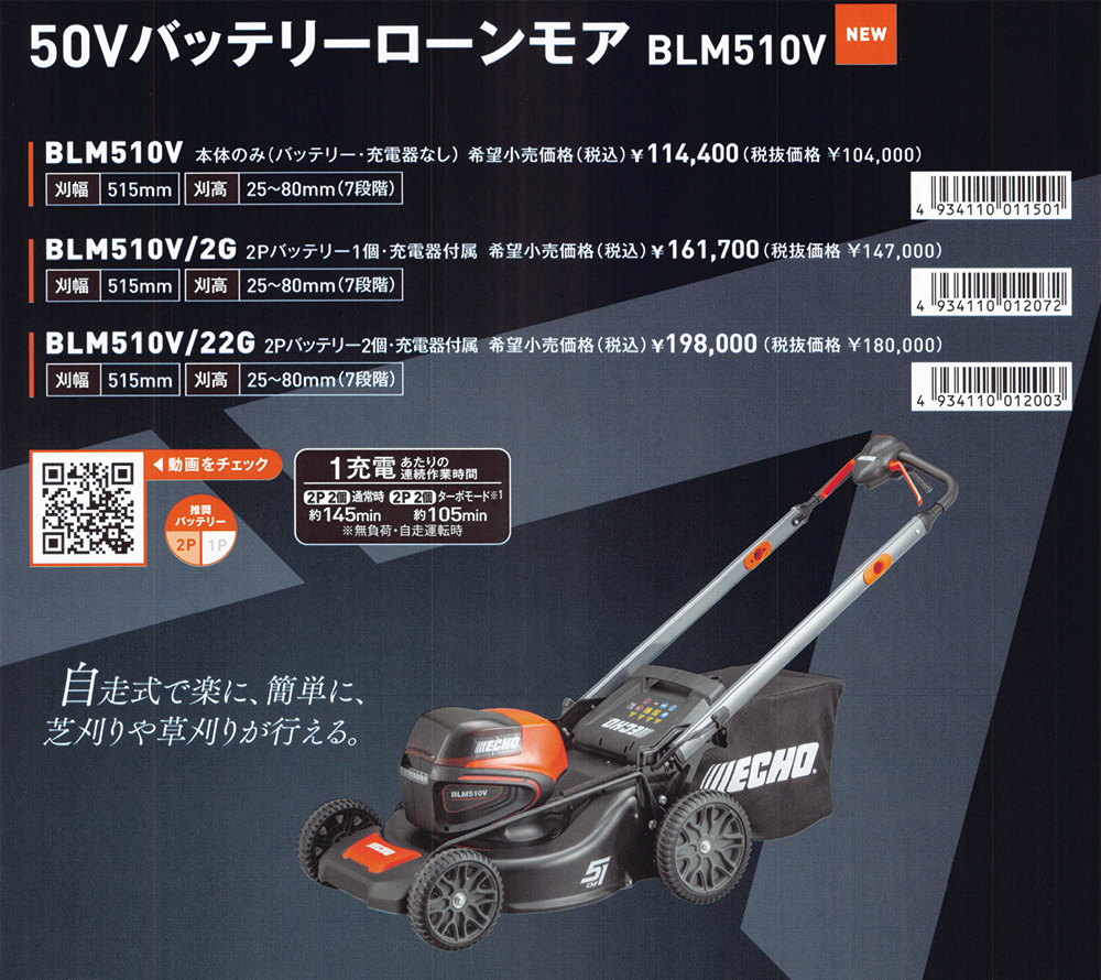 ECHO エコー バッテリーローンモア BLM510V (※本体のみ(バッテリー・充電器なし)) (50Vバッテリーツール 電動)