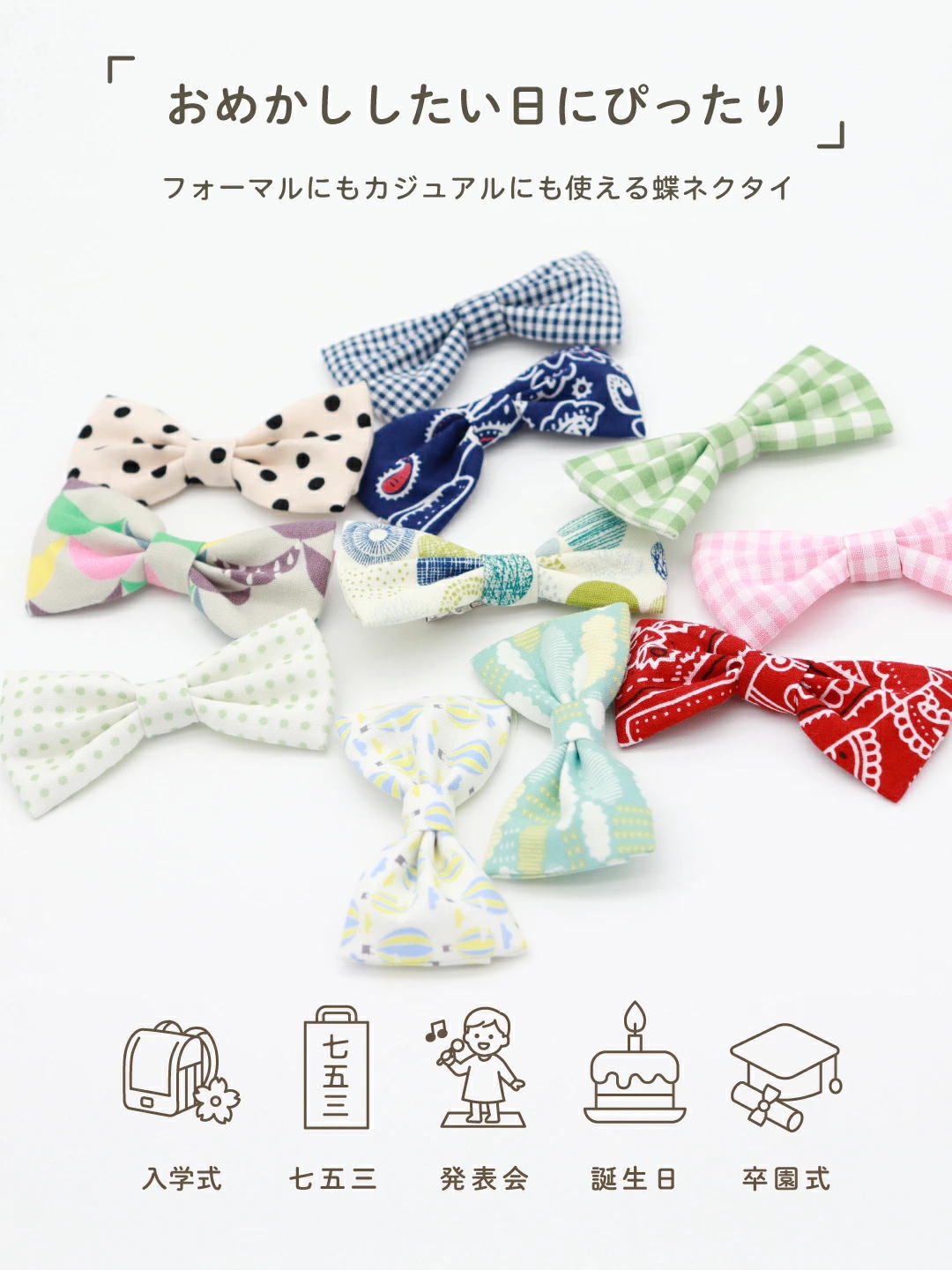 忙しい朝でもサッと付けられる、子ども用の蝶ネクタイです。