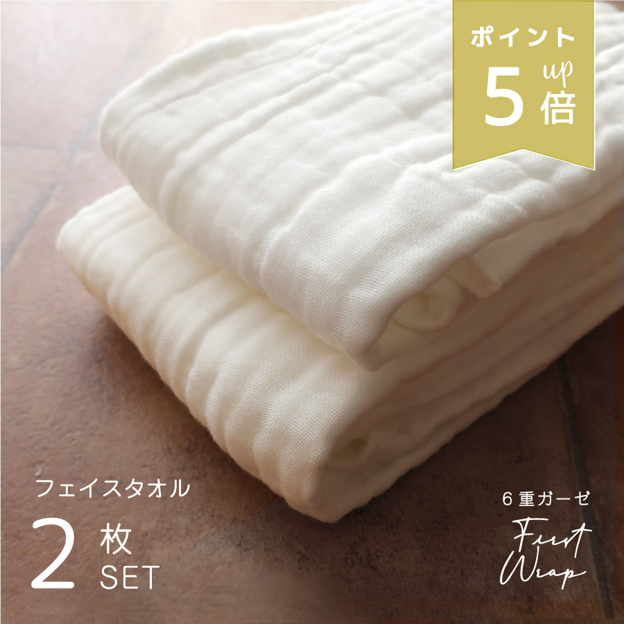 ガーゼ フェイスタオル 2枚セット 使うほど ふわふわ 最高級 6重 ガーゼ ベビー 赤ちゃん 肌に優しい 無漂白 新生活 おすすめ