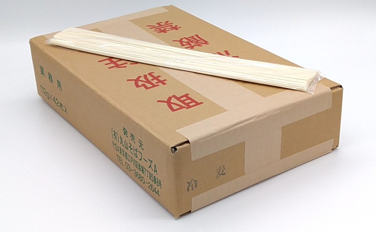 長さ36cmの冷麦です。一人前(112g)づつ袋詰めで1ケース40把入りです。