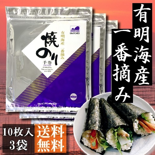 【送料無料】有明海産 一番摘み 焼のり 全型30枚(10枚入×3袋)【メール便】