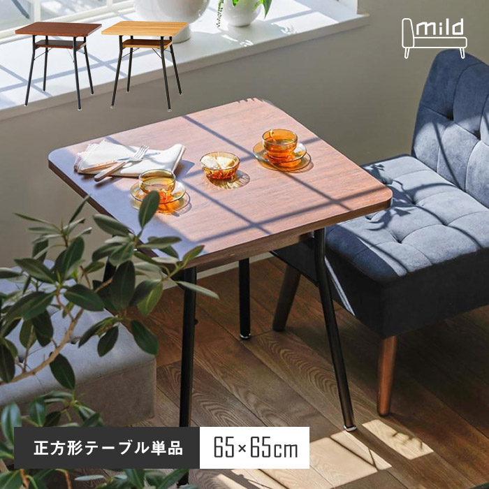 幅65cm、奥行き65cmとコンパクトな正方形でワンルームや小さなお部屋でも圧迫感がなく、1人から2人でのご使用におすすめです。天板の下の棚には新聞・雑誌・リモコンやティッシュなどをすっきり整頓できます。天板や棚板は傷や汚れに強いメラミン化粧板なので、お手入れも簡単です。一般的なダイニングテーブルより低めの高さ68cmなので、同シリーズのソファと合わせてソファダイニングとして使用できます。