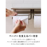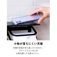 奥行きがしっかり12cmある天板は、先端が反った形なので、予備のペーパーを置いたり、お好みの小物をディスプレイしたり、スマートフォンなどの仮置き場としても安心してお使いいただけます。ペーパーが落ちないように先端を少し曲げた差し込みバーや、ペーパーを押さえるストッパーなど、シンプルながら使いやすい工夫がされています。粉体塗装仕上げなので、ひび割れや剥がれ、錆が発生しにくく、長くお使いいただけます。