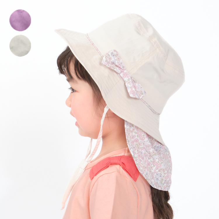 アウトレットSALE50%OFF価格 子供服 Kids Foret (キッズフォーレ) 花柄リボン日よけ付撥水ハット・帽子 50cm〜56cm B33405
