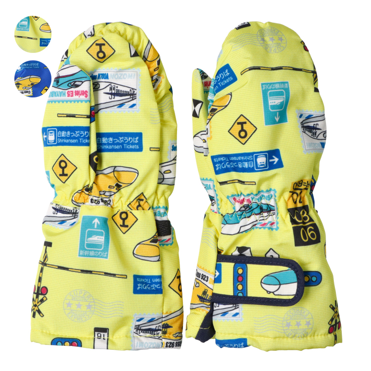 雪遊びに、外遊びに、寒い地域にぴったりなアイテムです!! はっ水加工している表オックス素材のスノーグローブ、手袋、ミトンです! 裏は薄手ボアとトリコット素材で暖か! 手首部分の内側にゴムが入っていて、マジックテープで留められるので、風が入りにくいのもポイントです! 表は耐水圧2000mmです! (完全防水ではありません。撥水スプレーとの併用がオススメです。) 対応サイズの目安はSサイズが80〜95cm、Mサイズが100〜120cmになります。 男の子に大人気の新幹線柄! はやぶさ、ドクターイエロー、のぞみの車体に踏切や看板などのプリント入り。 電車好きにオススメなアイテム。 同じ柄でジャンプスーツ・スノーコンビ(F54784)やキャハン、雪よけ足カバー(F55887)の作りもあるので、お揃いにも出来ます!
