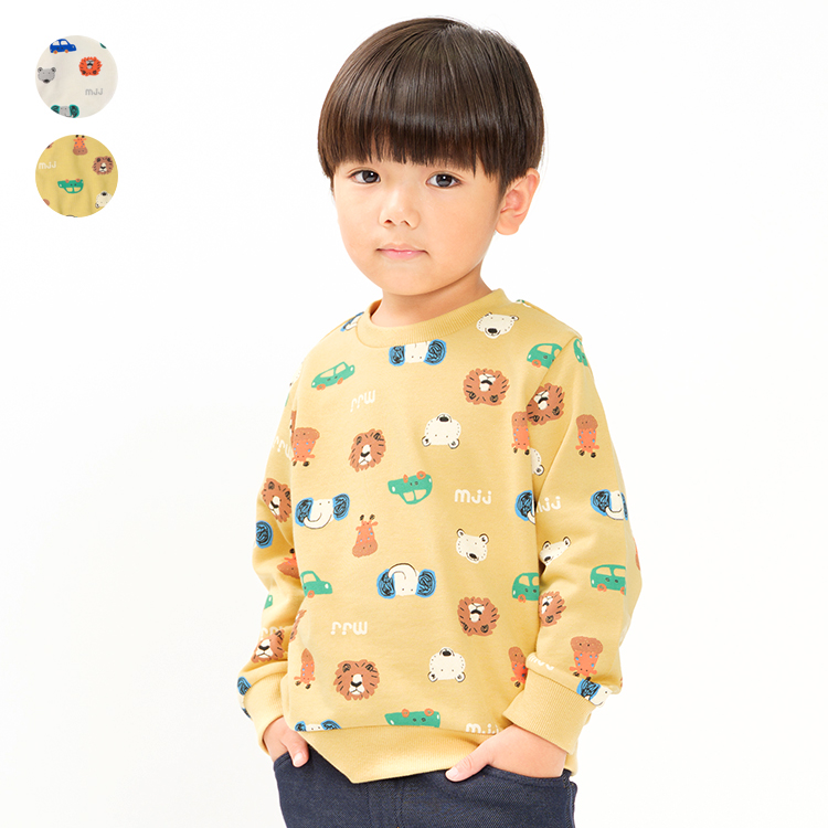 子供服 moujonjon (ムージョンジョン) 日本製動物車総柄裏毛トレーナー・スウェット 90cm 100cm 110cm 120cm M54642