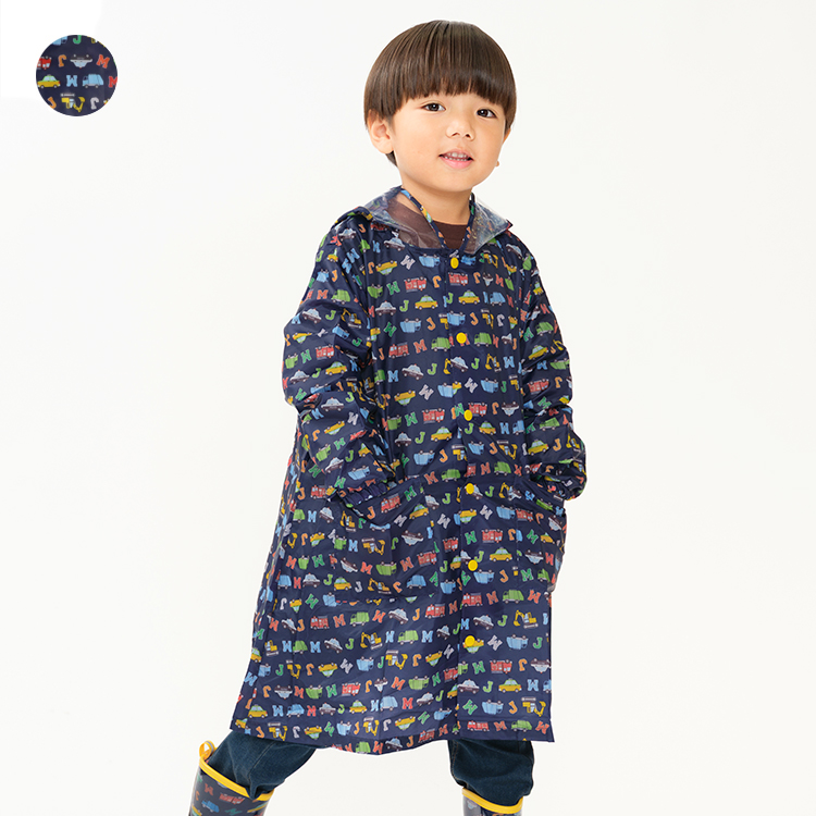 2/8まで期間限定送料無料 子供服 moujonjon (ムージョンジョン) 車ロゴ総柄レインコート S M L M87852