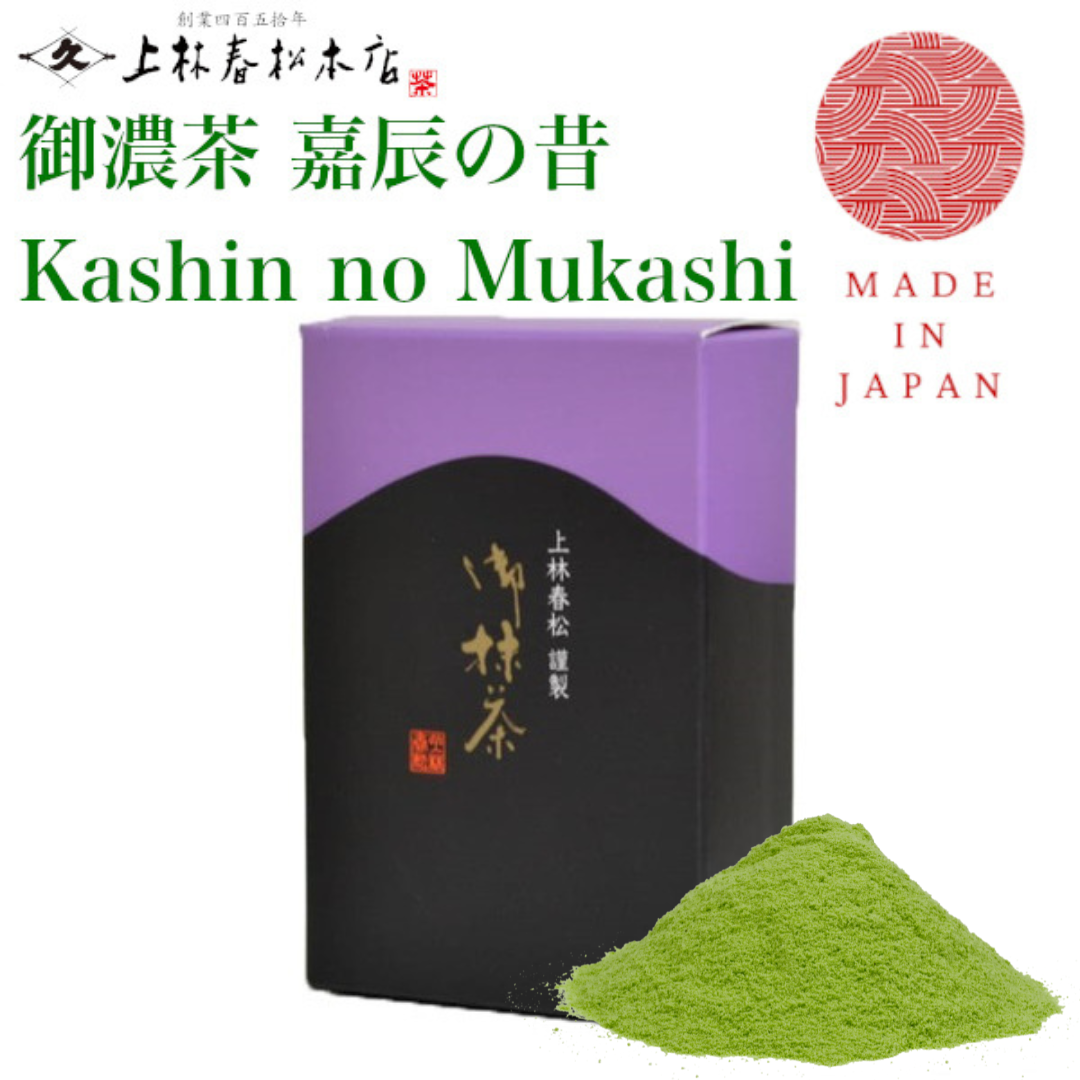 上林春松本店 抹茶 今日庵坐忘斎宗匠御好 嘉辰の昔(Kashin no Musashi) 濃茶用(Koicha) 創業450年老舗 無添加 最高級宇治抹茶 - Ceremonial Grade 40g紙箱