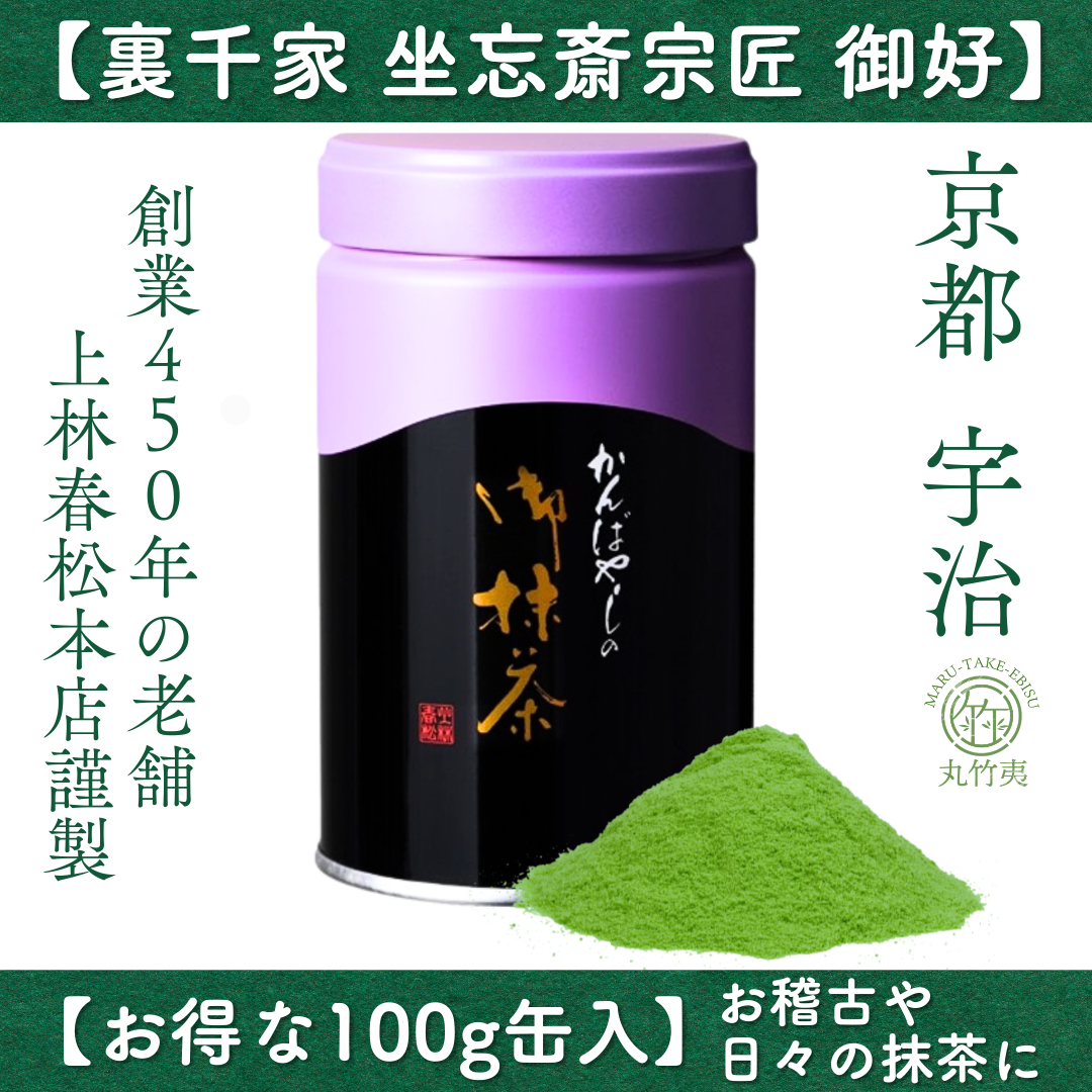 上林春松本店 宇治抹茶 五雲の白 100g缶 【今日庵坐忘斎宗匠御好】 【江戸時代より続く】 京都 老舗 茶道 お稽古 薄茶 抹茶ラテ Matcha Powder
