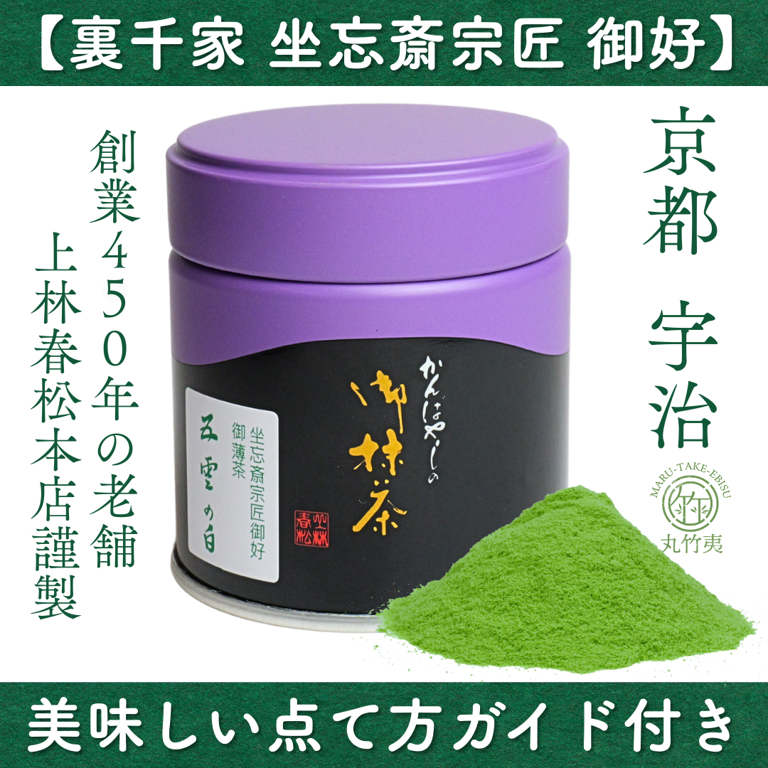 上林春松本店 宇治抹茶 五雲の白 40g缶 今日庵坐忘斎宗匠御好 【江戸時代より続く】 京都 老舗 茶道 お稽古 薄茶 濃茶 Matcha Powder