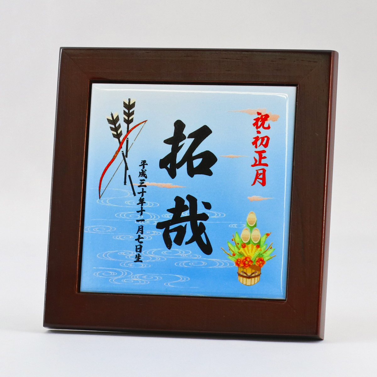【商品名】 名入れタイル 木枠付き 祝 初正月 (男の子) ≪TPYN-T-HM≫