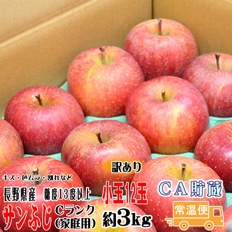 りんご 訳あり サンふじ 約3kg Cランク 小玉 12玉詰 長野県産りんご 家庭用 送料無料 フルーツ リンゴ 果物 くだもの 信州 CA貯蔵