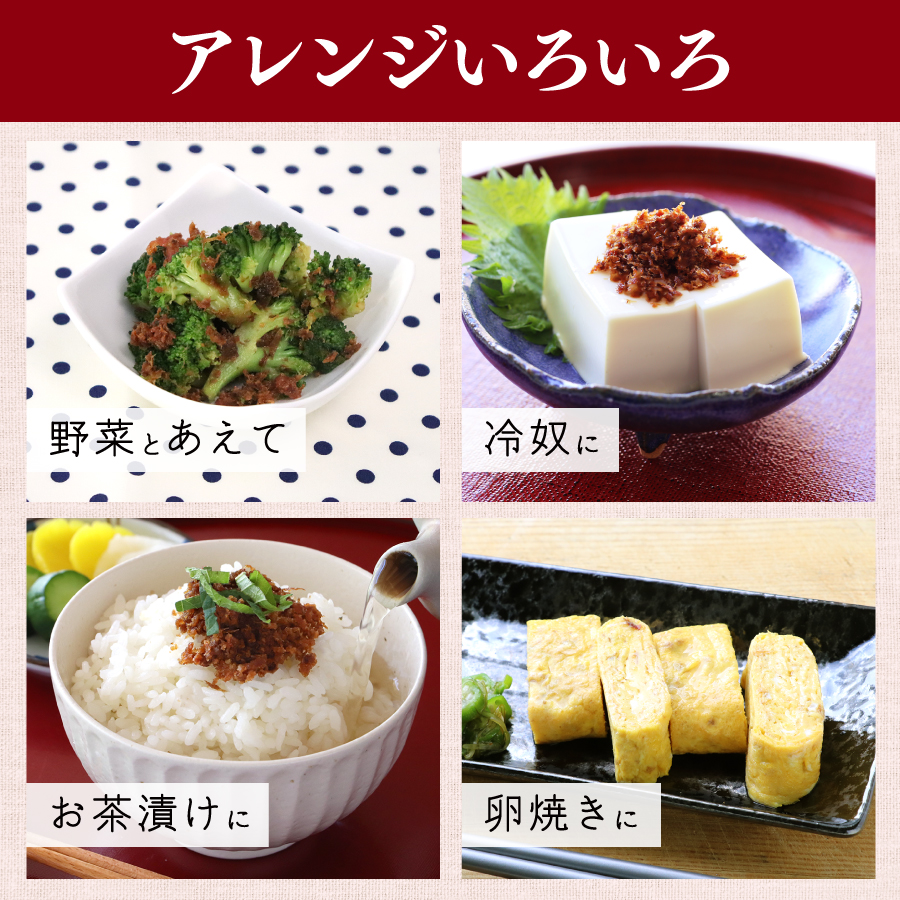 | そのままで / トッピング / まぜこみ / 混ぜ込み / ふりかけ / 佃煮 / つくだに |
