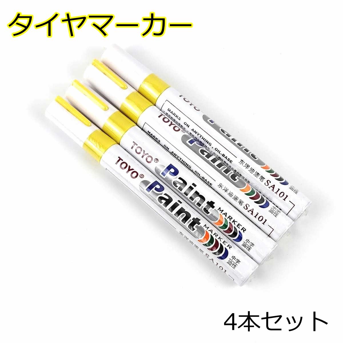 ゴムタイヤ用マーカーペン 黄色 4本セット