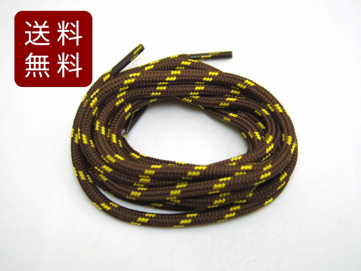 靴紐 シューレース 丸タイプ 斜めドット ダークブラウンXイエロー 160cm 1足分2本入り 送料無料