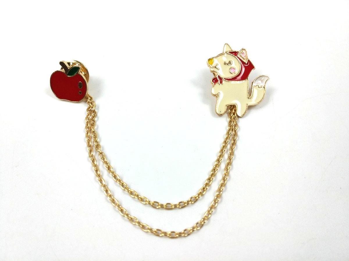 赤ずきん 狼 りんご ピンバッジ ピンズ チャーム付き チェーン 2.4cm X 2.9cm かわいい おしゃれ 留め具 バッチ 飾り方 使い方 付け方 バッヂ 装飾具 レディース