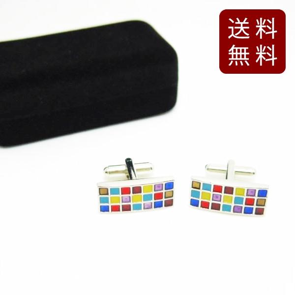 モザイク ラインストーン風 七宝焼風 カラフル カフスボタン 送料無料