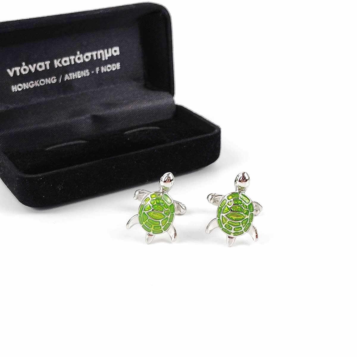 ウミガメモチーフが目を引く、おしゃれで遊び心あふれるカフスボタンです。