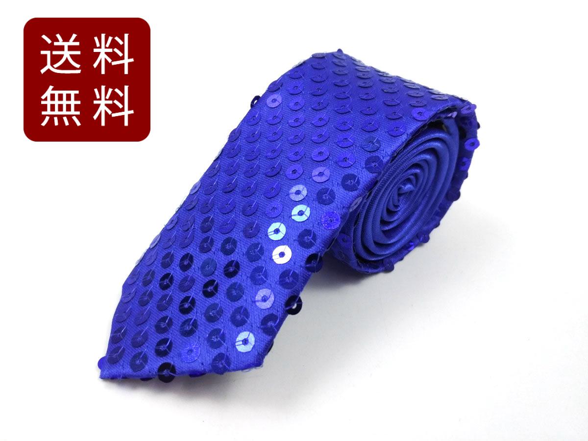 ナロータイ 細ネクタイ スパンコール ブルー 幅6cm 送料無料