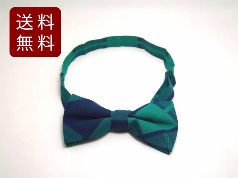 蝶ネクタイ ボウタイ 青グリーン格子柄 学生風 12cmX6cm 送料無料