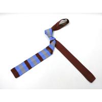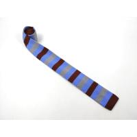 ニットタイ ナローネクタイ ボーダー 茶XブルーXグレー