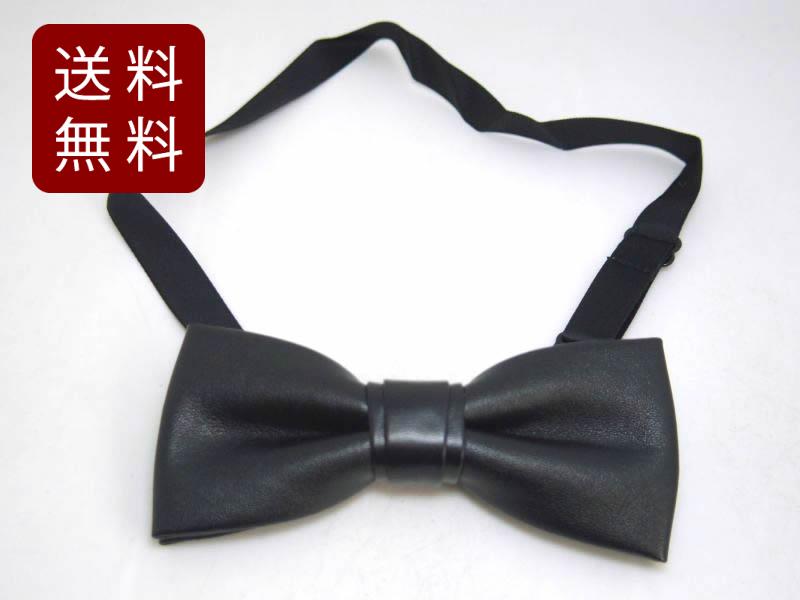 蝶ネクタイ ボウタイ PUレザー ブラック 11.5cmX5cm 送料無料