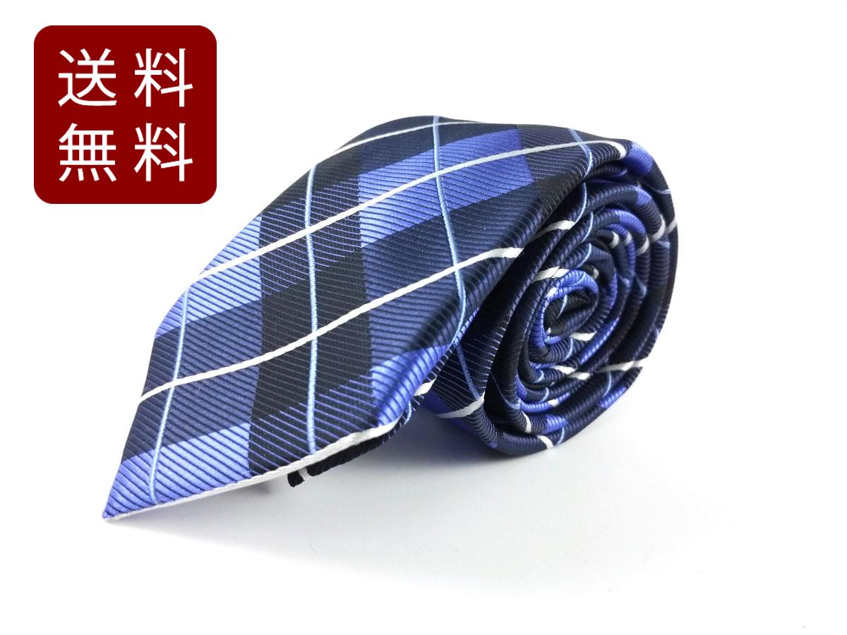 ナロータイ 細ネクタイ タータンチェック 学生風 ブルー 幅6cm