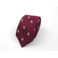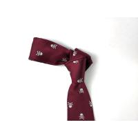スカル柄ネクタイ ナロータイ テキスタイル ワインレッド 骸骨 パーティーに 幅6cm 送料無料