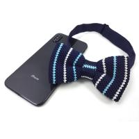 ニット蝶ネクタイ ボウタイ ネイビー青白ライン 11cmX6.5cm ニット 結び方 結婚式 着こなし おしゃれ メンズ レディース ボーイズ ボウ ボウタイ フォーマル